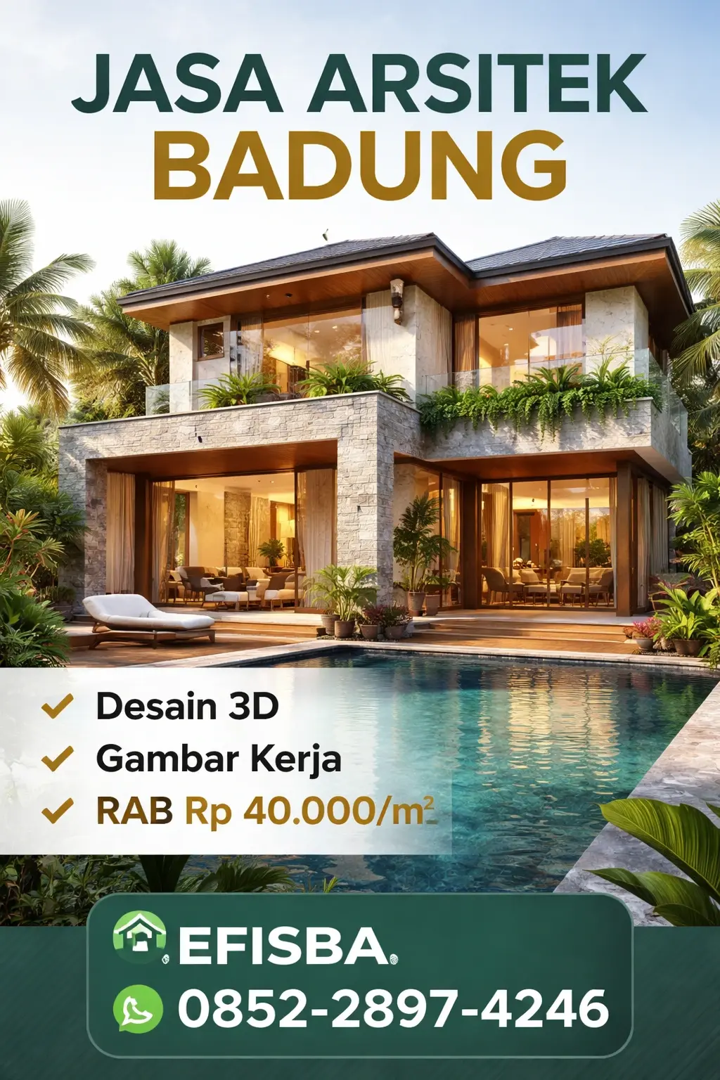 EFISBA dikenal sebagai brand yang fokus pada perencanaan bangunan efisien, terukur, dan mudah dipahami oleh klien. Pendekatan ini membuat setiap desain tidak hanya menarik secara visual, tetapi juga logis saat dieksekusi di lapangan.