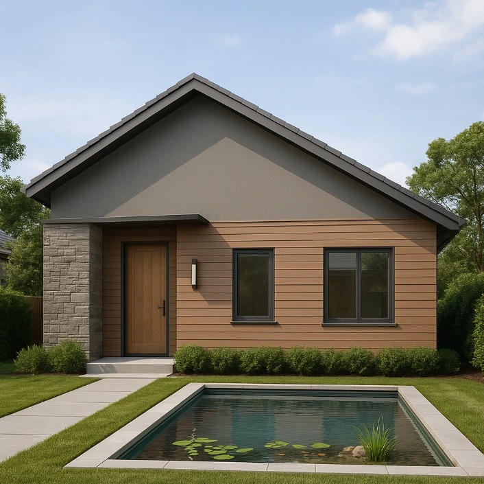 Untuk wilayah pedesaan seperti Siak atau Kampar, rumah bertingkat dua dengan kombinasi kayu dan batu alam sangat populer. Desain tersebut memberikan kesan hangat, elegan, dan menyatu dengan lingkungan sekitarnya.